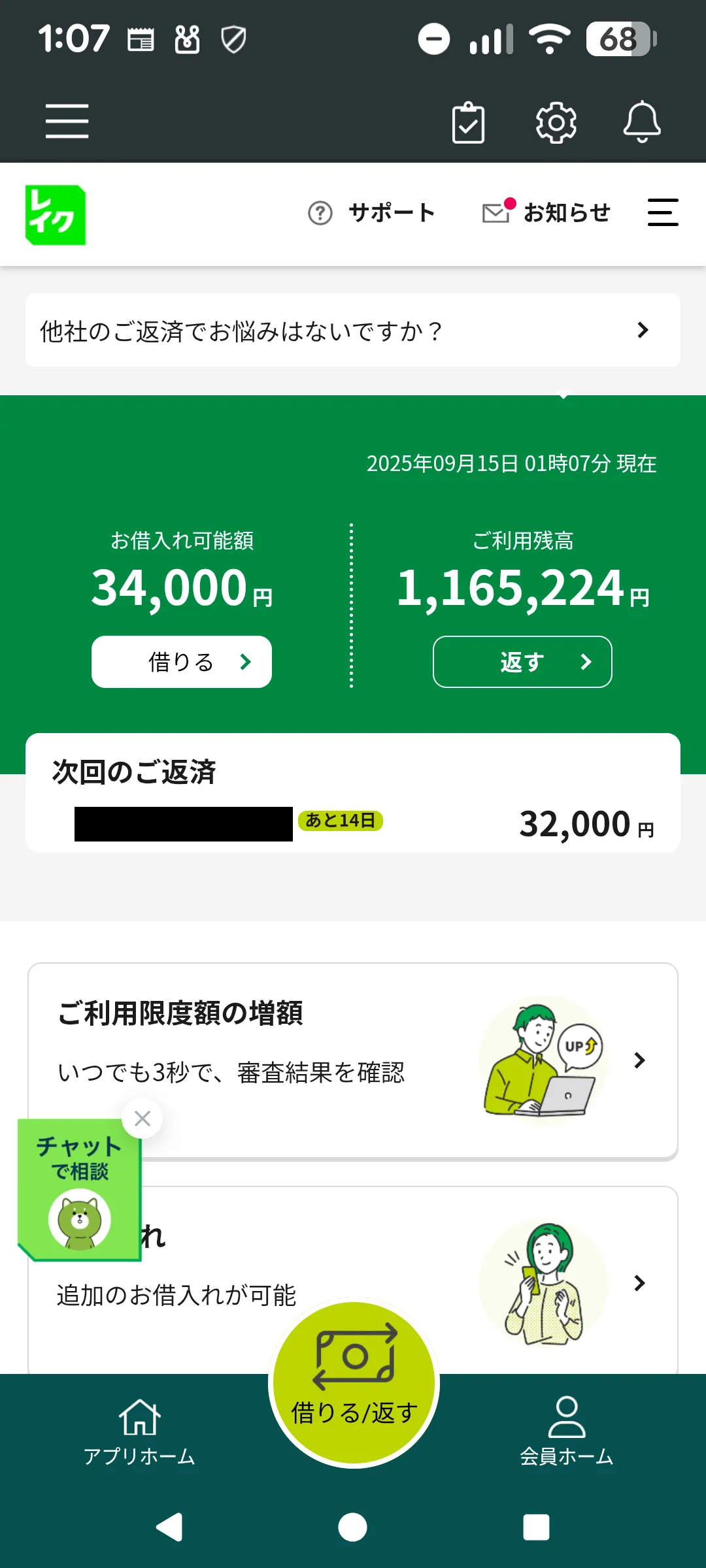 アプリでも管理しやすく返済計画が立てやすいです。借りるまでの時間もそこまでかからなかったためその辺も含めて良い点。