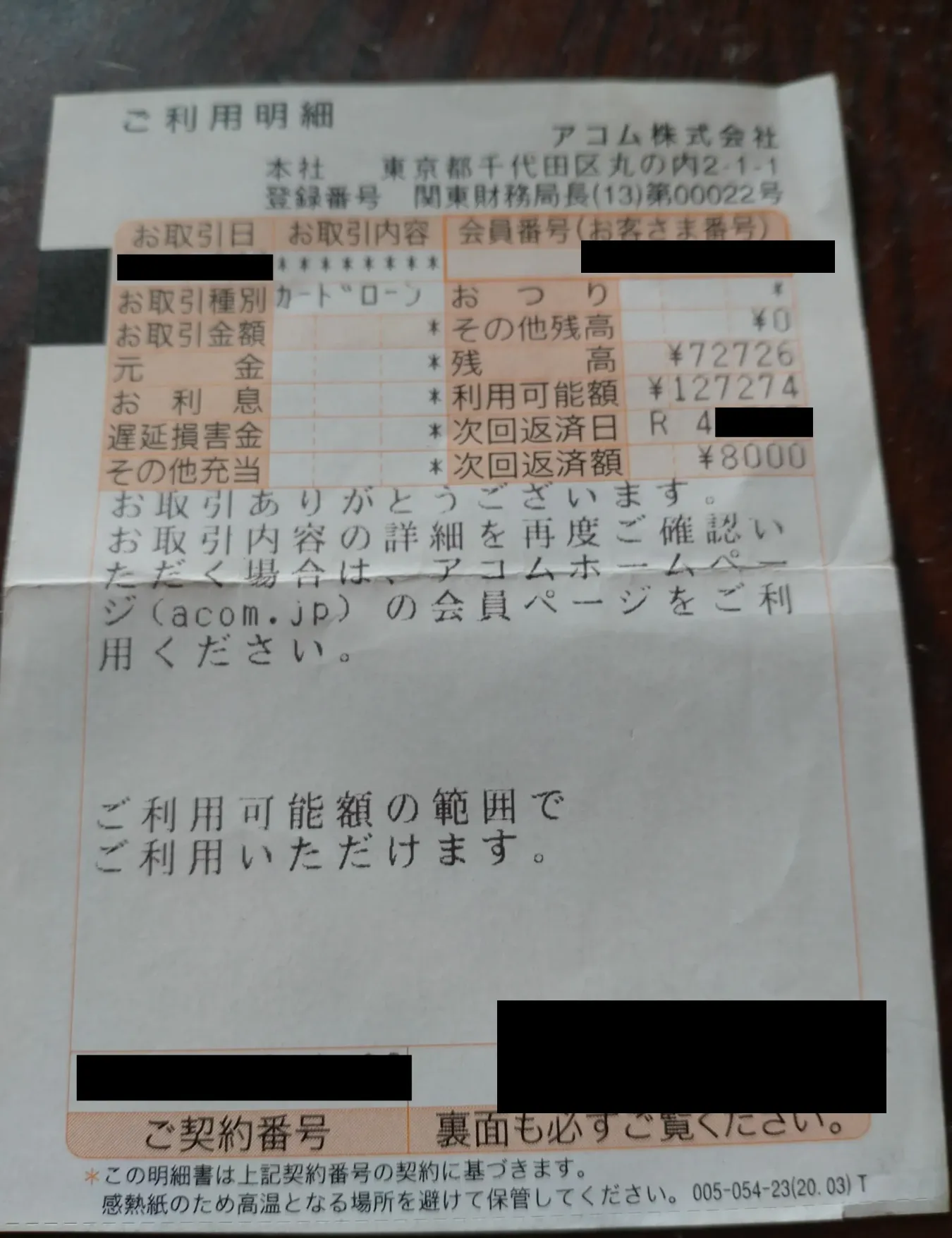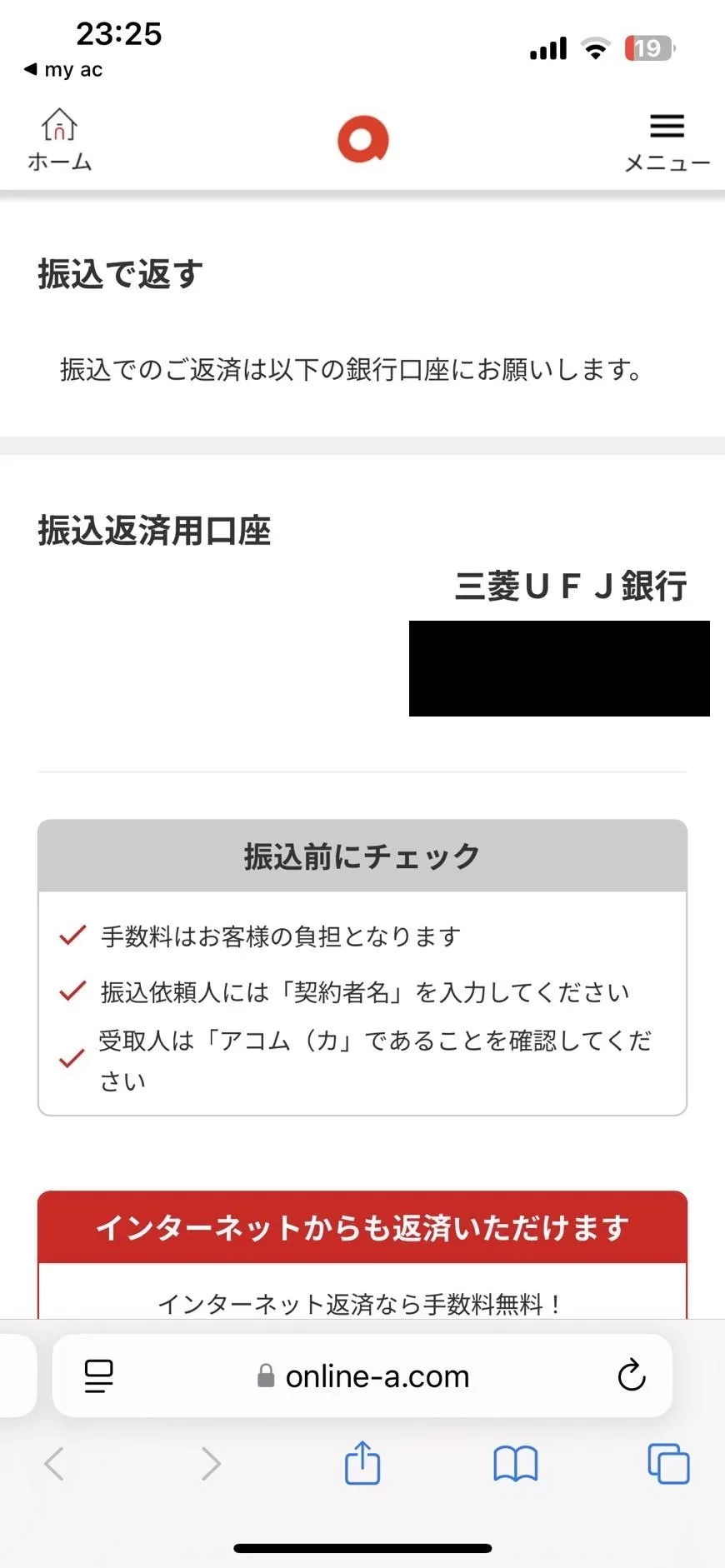 勤務先と自宅の間にアコムがあり、友人店舗で返済すれば振込手数料がかからない。
